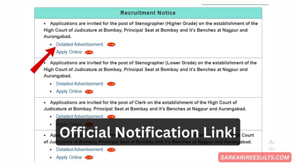 Bombay High Court Recruitment 2025 Official Notification Link!