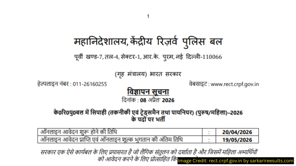 | CRPF Vacancy 2026 Apply Online, From 20 April 2026 | Click Here |