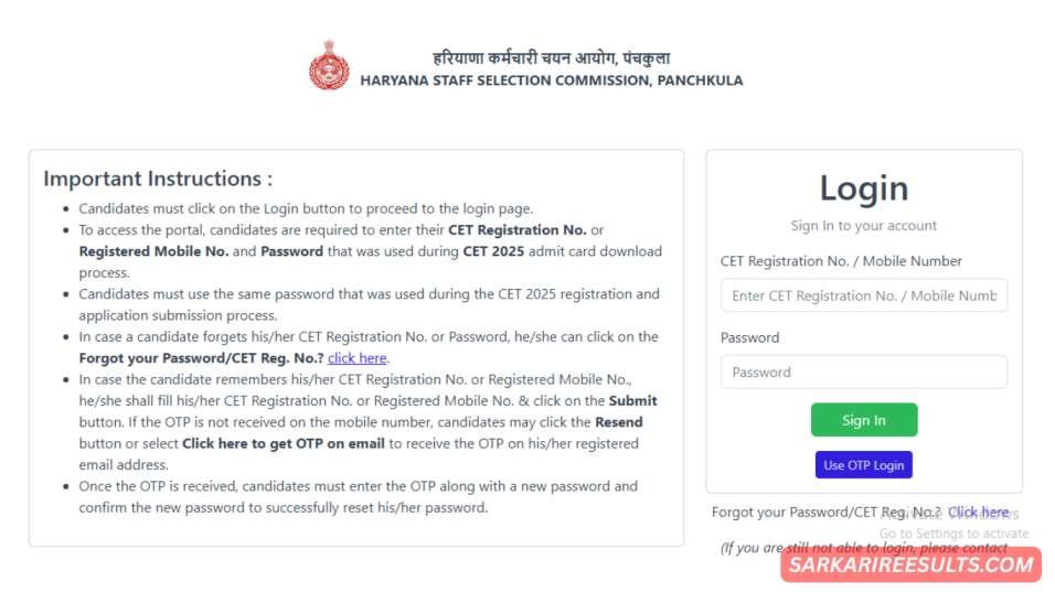 How to Download – HSSC CET Result 2025