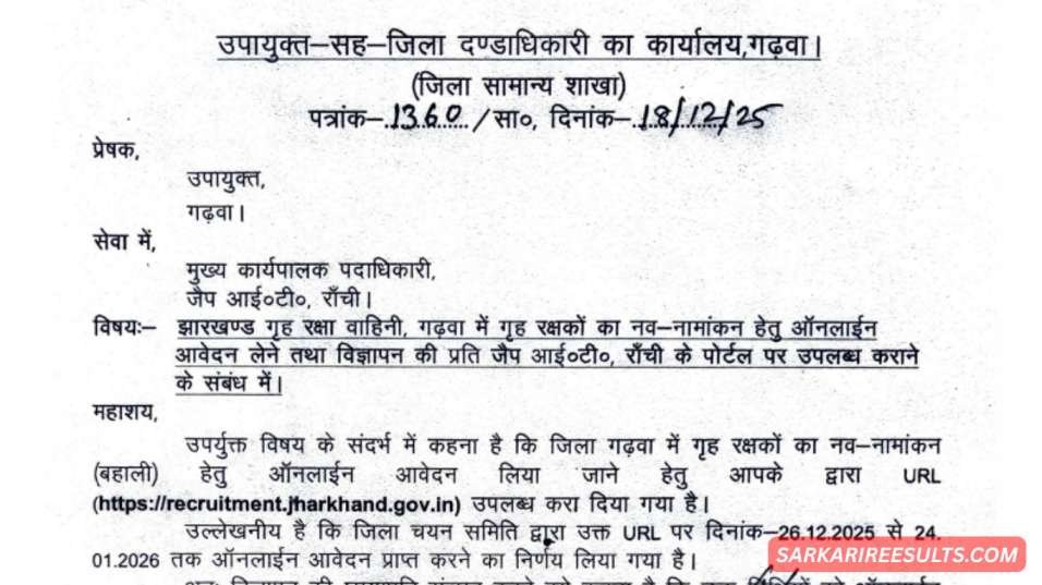 अंत में, अगर आप सरकारी करियर की शुरुआत करना चाहते हैं, तो Jharkhand Home Guard Garhwa Recruitment 2026 को मिस न करें। यह ट्रांसपेरेंट, आसान और लोकल फोकस्ड है। sarkarireesults.com पर लेटेस्ट अपडेट्स चेक करें, एडमिट कार्ड और रिजल्ट्स के लिए। जल्दी अप्लाई करें और अपने सपनों को हकीकत बनाएं!