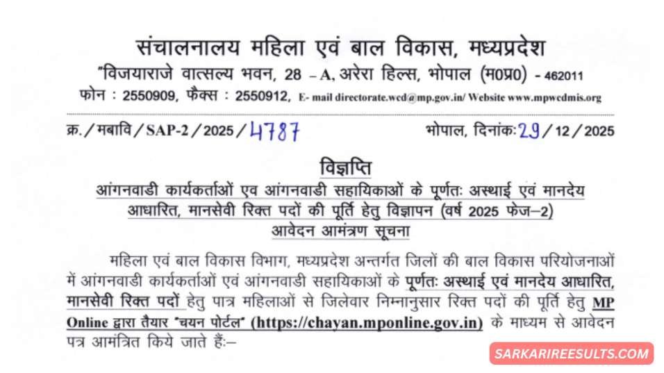 MP Anganwadi Recruitment 2026 Official Notification