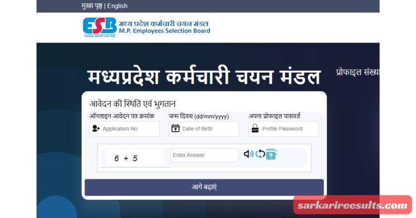 - सबसे पहले esb.mp.gov.in वेबसाइट पर जाएं या sarkarireesults.com से डायरेक्ट लिंक क्लिक करें।