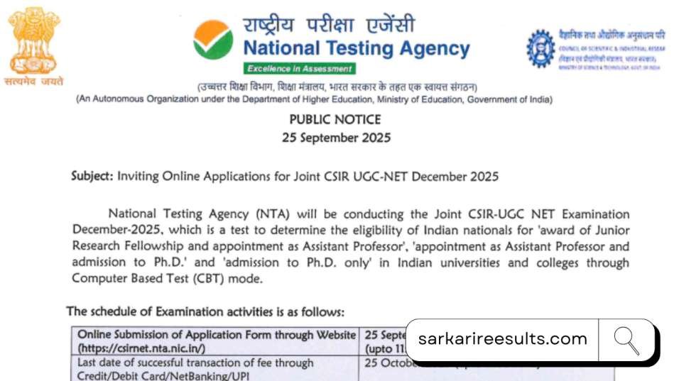 दोस्तों, ये NTA CSIR UGC NET December 2025 आपका टर्निंग पॉइंट हो सकता है – देर न करें! sarkarireesults.com पर और अपडेट्स के लिए सब्सक्राइब करें। आपका एक्सपीरियंस क्या है? कमेंट्स में शेयर करें – क्या तैयारी शुरू कर दी? आपकी स्टोरी हमें इंस्पायर करेगी!