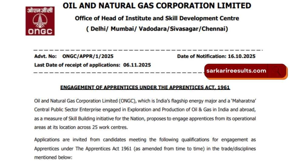 (यह भर्ती Advt. No. ONGC/APPR/1/2025 के तहत की जा रही है)