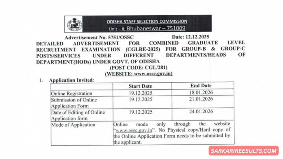| OSSC CGL (Group B & C) | 1576 | किसी मान्यता प्राप्त विश्वविद्यालय से Graduation + Computer Knowledge |