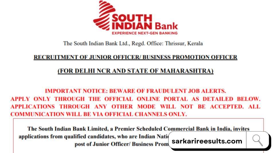 बैंक का नाम (Bank Name) | साउथ इंडियन बैंक लिमिटेड (South Indian Bank Ltd.) |