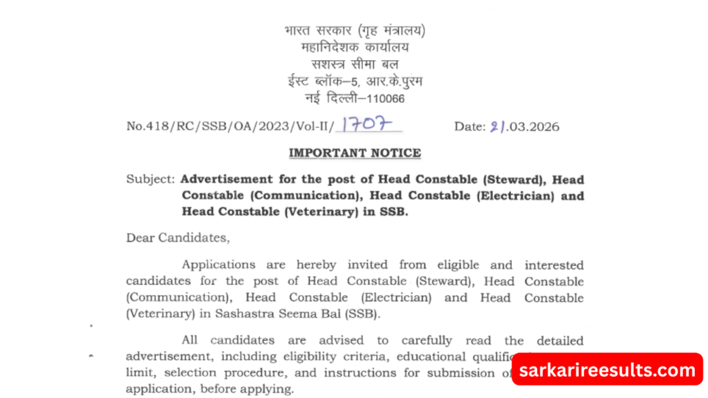 | SSB Head Constable Recruitment 2026 PDF | Click Here |