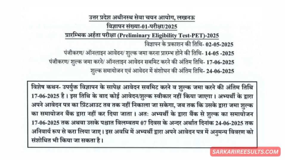 UPSSSC PET 2025 – Important Dates